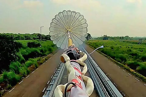 During the three comprehensive tests conducted at the RTRS facility, a range of real-world scenarios were simu-lated to rigorously evaluate the performance and reliability of the drogue parachutes, ISRO said.
