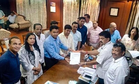 Panaji: Ten Congress MLAs out of 15 have split from the Congress and are going to merge with the BJP later tonight, Congress MLA Isidore Fernandes told reporters on Wednesday. “10 Congress MLAs are splitting from the Congress and joining the BJP tonight,” Fernandes said. Leader of Opposition Chandrakant Kavlekar is the leader of the group which has split from the Congress, Fernandes said. “We are going to meet the Speaker now. Once we step out, we would formally announce what has happened,” said Deputy Speaker of the state assembly Michael Lobo, who led the group of rebel Congress MLAs to Speaker Rajesh Patnekar’s office in the assembly premises. (IANS)