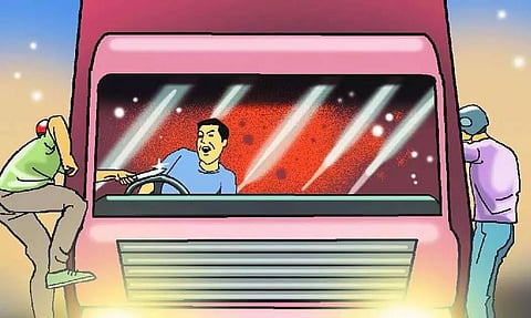 The driver and cleaner informed the police at Soolagiri station after they managed to free themselves with the help of the public.