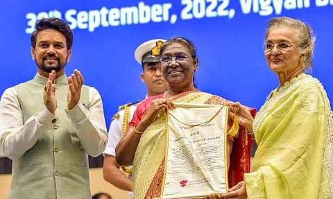 NEW DELHI, Sept 30: Veteran actor Asha Parekh received India's highest film honour, the Dadasaheb Phalke Award, on Friday evening at New Delhi's Vigyan Bhawan. The 79-year-old actress was honoured with the Dadasaheb Phalke Award for the year 2020. Asha Parekh, who was handed the award by President Droupadi Murmu, said, "The recognition comes to me just a day before my 80th birthday." The National Film Awards were delayed by a year due to the pandemic. Asha Parekh, who made her debut as a child artiste in Bollywood with the 1952 film Aasmaan, is best known for starring in films like Teesri Manzil (1966), Kati Patang (1970) and Caravan (1971).