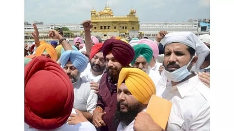 In a first show of solidarity and strength, Punjab Congress unit's newly-appointed President Navjot Singh Sidhu, accompanying 62 legislators, comprising many state Cabinet ministers, on Wednesday paid obeisance at the Golden Temple here. However, Chief Minister Amarinder Singh, who is upset with Sidhu over his purported remarks against his government over the power crisis and the sacrilege issue, and his close confidants were conspicuously absent from Sidhu's maiden visit to his constituency and religious places here. (IANS)
