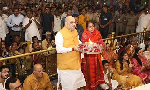 Ahmedabad: Union Home Minister Amit Shah, along with his wife Sonal Shah, performed the ‘Mangala Aarti’ on Thursday morning at the historic Jagannath Temple here, to kick-start the annual Gujarat Jagannath Rath Yatra that coincides with the Puri festival. Shah, who continues as the national Bharatiya Janata Party (BJP) President, was on his first visit to home state Gujarat after being inducted in the Union Council of Ministers. He inaugurated several projects on Wednesday.