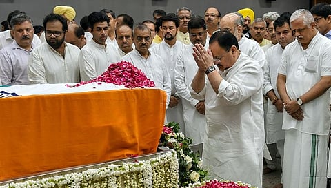 Rajni, a resident of Kalkaji, said: “I am a great political enthusiast and loved listening to all his speeches... he was an outstanding orator.” Earlier in the day, Arun Jaitley’s mortal remains were brought from his south Delhi home to the BJP headquarters where party leaders paid their last rites to the departed soul. A minor scuffle broke out between the security forces and the common people as the latter tried to enter the party headquarters. The doors were later opened for the people, following which a long queue emerged on the Deen Dayal Upadhyay Marg to pay their last respects to the BJP stalwart.