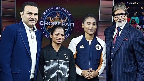 As the show further proceeded, Big B also showcased a collage video of Hima Das and Dutee Chand, on their winning moments and said that the country is proud of them.
