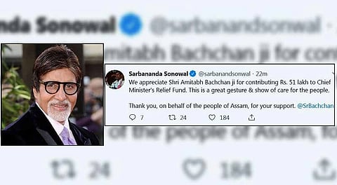 The megastar of the millennium has made the donation to the Chief minister's Relief Fund for being of use in the rescue, rehabilitation and repairings of the flood-affected people and villagers of the state. Assam Chief Minister Sarbananda Sonowal has taken to express his gratitude towards the Bollywood star by making a tweet. The Twitter post reads: "We appreciate Shri Amitabh Bachchan ji for contributing Rs. 51 lakh to Chief Minister's Relief Fund. This is a great gesture & show of care for the people. Thank you, on behalf of the people of Assam, for your support.
