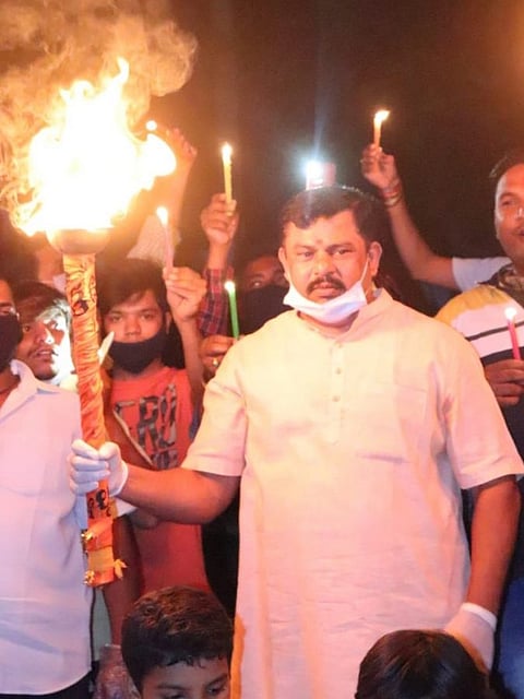 Telangana’s BJP MLA Raja Singh lit torches and shouted slogans 'Chinese Virus Go Back' in response to Prime Minister Narendra Modi’s appeal was to switch off the lights in homes for nine minutes on April 5.