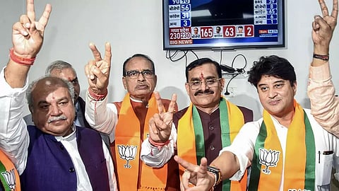 "I want to thank the people of the state for this unexceptional victory in the Assembly elections. This is the victory of the efforts of PM Modi and the developmental works done by the double-engine government. Our party workers have worked day and night for the victory of the BJP. Under the leadership of PM Modi, the double-engine government has done a miracle. I want to thank PM Modi, Amit Shah and our party president, JP Nadda, for guiding us throughout the election campaign," said Madhya Pradesh Chief Minister Shivraj Singh Chouhan after crossing the majority mark.