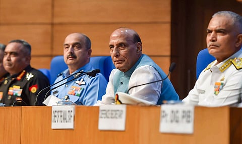 NEW DELHI: As the agitation over the Central government's Agnipath recruitment scheme continues across the nation, Union Defence Minister Rajnath Singh chaired a meeting with the service chiefs for the second straight day at his residence.