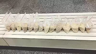 During the frisking of four trolley bags, 14 packets filled with the brown powdery substance were found which were found.