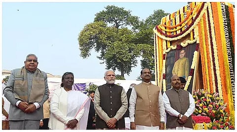 NEW DELHI: On the occasion of Dr. Bhim Rao Ambedkar's passing, President Droupadi Murmu presented flowers to his statue at the Parliament on Tuesday.