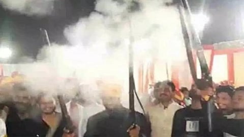 Several people were seen carrying guns while others were seen firing in the air. The firing took place at the huge pandal and the stage set up for the ceremony.
