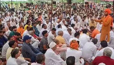 GURUGRAM: Haryana khaps, religious leaders and Hindu bodies at the Palwal Mahapanchayat on Sunday decided to resume the Braj Mandal Jalabhishek Yatra in Nuh on August 28. The mahapanchayat was called by the Sarv Hindu Samaj at Pondri village in Palwal to discuss the resumption of Vishva Hindu Parishad's (VHP) Jalabhishek Yatra. However, despite the permission for only 500 people for the mahapanchayat, the gathering far exceeded that number. In view of the mahapanchayat, the police had barred outsiders from entering the village besides beefing up security.