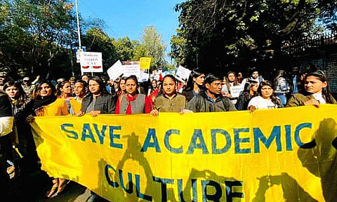 The march started from the Arts faculty at DU's North Campus and went through the campus Law Centre, Ramjas College, Kirorimal College, Hansraj College, and Daulatram College before concluding near the statue of Swami Vivekananda in the Arts faculty.