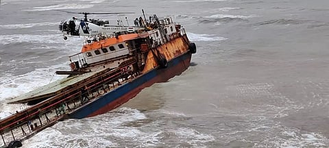 In a daredevil operation, the Indian Coast Guard on Thursday rescued 16 crew members of a sinking cargo ship near the Revdanda jetty off Maharashtra's Raigad district, an ICG spokesperson said. The incident happened in the early hours when Indian-flagged M.V. Mangalam's second officer intimated that the ship, with 16 on board, had partially sunk around 3 kms off the Revdanda jetty in the stormy Arabian Sea. In view of the distress and with water ingress panicking the crew, the ship captain was even planning to abandon the vessel, the ICG was told. Gauging the seriousness of the situation, the ICG's MRCC team calmed down the alarmed captain and crew and asked them to remain on board as help was being deployed. (IANS)
