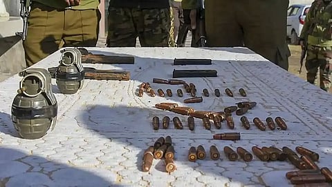 The Jammu & Kashmir Police along with the Army on Sunday made the third consecutive recovery of arms, ammunition and grenades after the recent busting of a terror module and arrest of three terrorist associates in Mendhar area of Poonch district, officials said. The fresh recovery was made on Sunday morning during an operation at village Dabbi of Balakote near the LoC. On December 28, three terrorist associates were arrested in Balakote area near the LoC where six hand grenades were recovered from their possession. During their sustained interrogation some more vital clues were developed after which police and Army launched an operation in Dabbi village located ahead of LoC fence in Balakote from where another consignment of arms, ammunition and grenades was recovered. The recovery includes one pistol, three pistol magazines, 35 bullets and five hand grenades. (IANS)