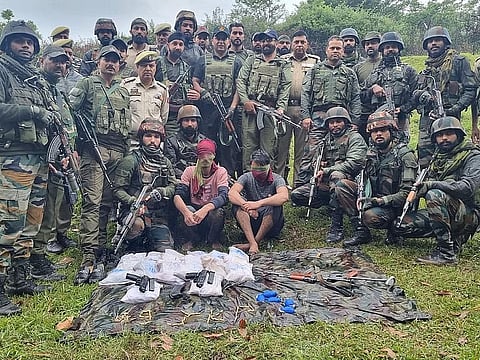The entire area was immediately cordoned off by the security forces, resulting in the arrest of three people, one of whom was injured, along with a shipment of drugs and weapons, according to the officials. An Army jawan also sustained injuries.