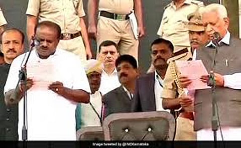 Bengaluru, May 23: JD-S leader H.D. Kumaraswamy was on Wednesday sworn in as the Chief Minister of Karnataka here in a ceremony that brought together leaders of anti-BJP parties on a single platform exactly a year ahead of the 2019 Lok Sabha elections.