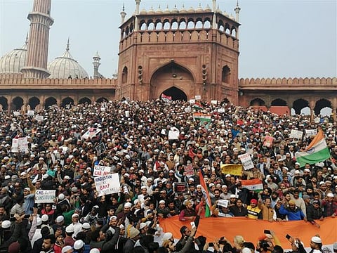 Delhi: People gathered outside Jama Masjid in Delhi to protest against the Citizenship Amendment Act.