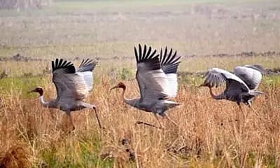 Wildlife experts said after its regular sightings in Punjab's Nangal marshy areas almost a decade and a half ago, its sighting now is rare as most of them either vanished with the gobbling up of ponds and increased illegal mining or they migrated to other areas. The Sarus crane attains a height of up to 6 feet, with a wingspan of 8 feet. It is the tallest of all the 15 species of cranes in the world. Its habitat is shallow wetlands, marshes, ponds and fields.