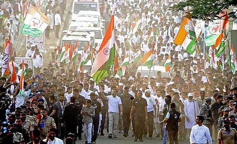 NANDED (MAHARASHTRA): Maha Vikas Aghadi allies Nationalist Congress Party and Shiv Sena-UBT have expressed solidarity with and joined the Congress' Bharat Jodo Yatra, currently traversing through Maharashtra, party leaders said here on Thursday. NCP State President Jayant Patil, ex-Minister Dr Jitendra Awhad and MP Supriya Sule, along with a large number of party activists, joined the BJY in Nanded town on Thursday where Rahul Gandhi will address a massive rally. On Friday, Shiv Sena-UBT's Aditya Thackeray and a delegation of other leaders and their workers from Nanded and surrounding regions will join the BJY and march with Gandhi.