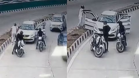 Footage from CCTV cameras showed four criminals wearing helmets waylaying the taxi in the Pragati Maidan tunnel, pointing a gun at the two passengers travelling inside and escaping from the scene with a bag of cash.
