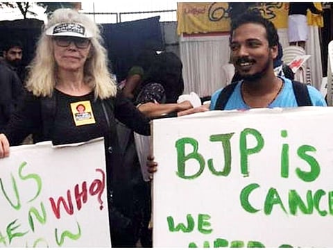 Janne-Mette had posted pictures from the protest along with a status on Facebook, which read, “This afternoon I participated in a protest march; People’s Long March. It started out from Gandhi Circle Ernakulam, and we marched with slogans and flags to Vasco da Gama Square Cochin, while the protesters were singing and chanting and with their fists up. The People’s Long March was very well organized. (sic)”