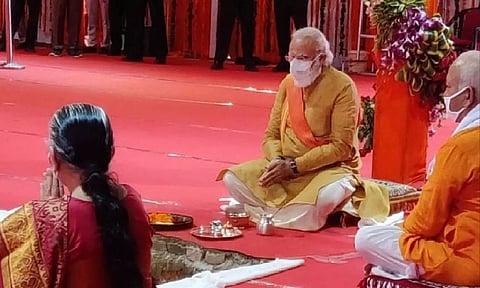 Uttar Pradesh Chief Minister and BJP leader Yogi Adityanath, who joined Modi in some of the customs, hailed the PM for fulfilment of dream to build a Ram temple in Ayodhya.