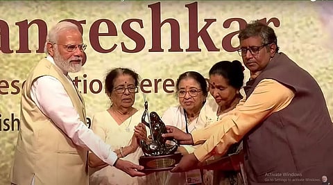 As per his own request, Modi did not sit on dais but occupied a front seat among the audience and walked onto the stage when his name was announced to accept the honour as a commoner. Present on the occasion were almost the entire Mangeshkar clan, Maharashtra Governor Bhagat Singh Koshyari and Minister Subhash Desai, though Chief Minister Uddhav Thackeray kept away reportedly as his name did not figure in the official invite.