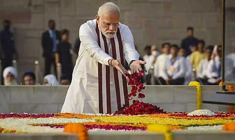 "Paying homage to Mahatma Gandhi on #GandhiJayanti. This Gandhi Jayanti is even more special because India is marking Azadi Ka Amrit Mahotsav. "May we always live up to Bapu's ideals. I also urge you all to purchase Khadi and handicrafts products as a tribute to Gandhi Ji." "His ideals reverberate globally and his thoughts have provided strength to millions of people," PM Modi wrote in his tweet. IANS