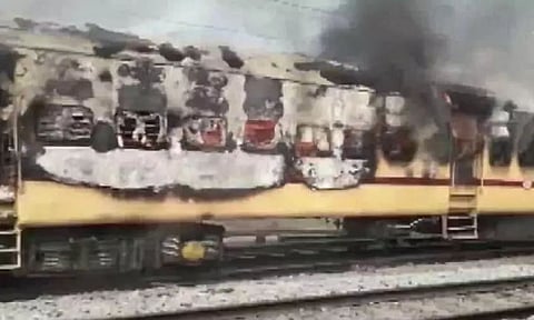 Patna: Railway job aspirants protesting over the recruitment exams allegedly set a train on fire on Wednesday.