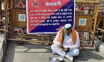 GHAZIPUR: Rakesh Tikait, National Spokesperson of the Bharatiya Kisan Union (BKU), on Tuesday ate lunch sitting on the ground near one of the police barricades at the Ghazipur border. He said the agitation will continue.