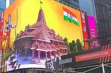 "It shows how successful Indians are in America that our Ram Temple and tricolour are on the most iconic screen in the world. It is a proud moment for India and Indians," Jagdish Sewhani, President of the American India Public Affairs Committee, said.