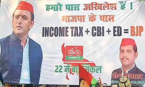 The SP has come up with a poster with a caption, ''We have Akhilesh, while BJP has Income Tax+CBI+ED''.