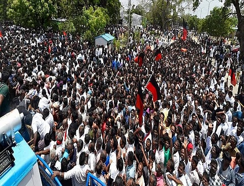 Chennai, Aug 8: Two persons were killed and 35 suffered minor injuries on Wednesday in a stampede outside the Rajaji Hall here as hundreds of thousands thronged for a final glimpse of DMK leader M. Karunanidhi, a hospital official said. A senior official of the Rajiv Gandhi Government General Hospital told IANS: “Two persons were brought dead to the hospital with injuries arising due to trampling. One is a woman, Shanbagam, while the other person is an unidentified male.” The dead woman was said to be 60 years old. The official added that another 35 persons were brought to the hospital with minor injuries. Some were dehydrated. They were given treatment. “There has been heavy jostling and pushing and pulling in the crowd since morning,” one man at the site said, explaining what led to the stampede. The tragedy occurred shortly after DMK leader and Karunanidhi’s son M.K. Stalin appealed for calm to the milling crowds which were getting restive at not being able to get close to the former Tamil Nadu Chief Minister’s body. (IANS)