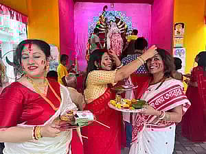Explaining the rationale behind the vermillion ritual, Dolon Sengupta, a home-maker, said that for Bengalis, Durga is not just a goddess who destroys the evil.