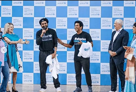 Notably, Tendulkar is UNICEF's Regional Goodwill Ambassador while Khurrana is the Celebrity Advocate for Child Rights. The duo participated in the friendly football match with a team of 20 children.