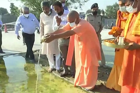 AYODHYA: Uttar Pradesh Chief Minister Yogi Adityanath on Sunday offered water from Kabul River, sent by a girl from Afghanistan, to Lord Ram in Ayodhya.