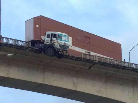 As per reports, an 18-wheeler trailer truck was seen partially hanging off the bridge after the driver allegedly lost its control of the vehicle, thus, striking the concrete wall at the Kolia Bhomora Bridge.
