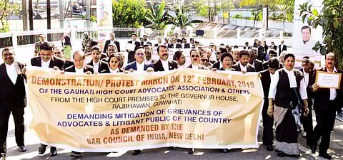 GUWAHATI: The All Bar Associations held a nationwide protest march at respective Headquarters on Tuesday from 12.30 pm against inaction on the previous promise by the PM of India on March 1, 2014, for the fulfillment of demands. In the city, the protest march started from High Court to Raj Bhawan.
