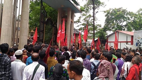 SILCHAR: The All India Kishan Sabha (AIKS) organized a protest demonstration before the office of the Deputy Commissioner of Cachar here on Saturday against the eviction drive in Howaithang reserve forest of Cachar on June 7 in which 82 families, poor and daily wage earners, were rendered homeless and shelterless. They have been reportedly living there for the last 40 years. AIKS leaders described the eviction drive as most inhuman as 15 pachyderms were deployed to demolish the houses of these unfortunate victims.