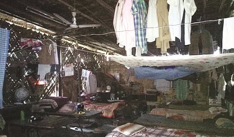The barrack of the police station has perforated corrugated iron sheets overhead that give in water when it pours. The barrack has walls made of sliced bamboo. That too gives in water when there is slanting rains. The barrack with the porous roof is in no way a happy place for them to flake out. This is not all. The barrack looks like a cubbyhole as around six/seven personnel have to get themselves accommodated in a single room.