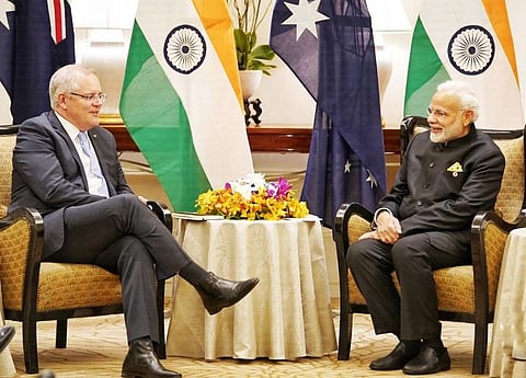 Osaka: Australian Prime Minister Scott Morrison on Saturday praised his Indian counterpart Narendra Modi in a tweet in Hindi saying “Kithana acha he Modi”. The two Prime Ministers met in this Japanese city on the sidelines of the ongoing G20 Summit. Along with the tweet, Morrison also posted a selfie with Modi where the two leaders are seen smiling. Modi then retweeted Morrison’s post and said: “Mate, I’m stoked about the energy of our bilateral relationship!” Before Morrison, Modi also met Trump again on Saturday morning. The other leaders he met were the Presidents of Brazil (Jair Bolsonaro) and Indonesia (Joko Widodo). (IANS)