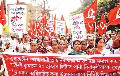 The CPI (M) held a protest demonstration in demand for a permanent solution regarding the problem of water supply. CPI (M) Guwahati Regional Committee Secretary Kashyap Chowdhury expressed his indignation at the hitch in water supply and commented that a thorough CBI probe should be made into the matter. “The irregularities in water supply need to be methodically investigated and the government needs to quicken its pace with the water supply schemes”, he conditioned.