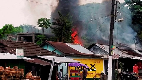 DOOMDOOMA: A devastating fire that broke out around 11 pm on Sunday night gutted the godown of Kartaram Agartala’s wholesale ration shop and nearby residence of Mahindar Sah situated at Netaji Road, Sonari Patti of the town. Eight fire tenders from Doomdooma, Tinsukia fire stations and nearby Aviation Research Centre (ARC), Sookerating were pressed into service and were able to extinguish the fire after two hours. The cause of the fire has been assumed to be due to short circuit. According to a conservative estimate, the loss of property will be around Rs 50 lakh.