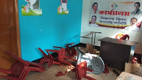 As per a report, District President Dilip Baruah’s chamber was vandalized by the party workers for his alleged one-sided style of functioning in the party.