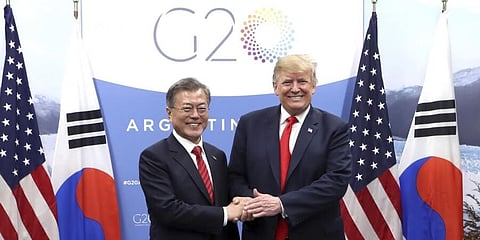 Seoul: South Korean President Moon Jae-in on Monday relayed a message from his American counterpart Donald Trump to North Korean leader Kim Jong-un that Washington was ready to give Pyongyang everything in return for denuclearization. Moon made the remark onboard his presidential plane that Trump asked him during their meeting Friday at the G20 in Buenos Aires to personally convey the message to Kim, reports Efe news.