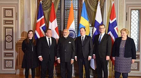 Stockholm, April 18: India and the five Nordic nations of Sweden, Denmark, Iceland, Norway and Finland on Tuesday agreed to deepen cooperation in innovation and climate change in the first India-Nordic Summit held here during the course of Indian Prime Minister Narendra Modi’s visit here. “During the Summit, the Prime Ministers pledged to deepen cooperation between India and the Nordic countries and focused their discussions on key issues related to global security, economic growth, innovation and climate change,” the Indian External Affairs Ministry said in a statement following the meeting. “They acknowledged that innovation and digital transformation drive growth in an interconnected world, which underpin a growing engagement between India and the Nordic countries,” it stated. “The Summit emphasized the India’s strong commitment to innovation and digital initiatives as key to prosperity and sustainable development, with national flagship programmes such as Make in India, Start-up India, Digital India and Clean India.” Ahead of the Summit, Modi held separate bilateral meetings with his counterparts from Denmark, Iceland, Norway and Finland. Modi held the first meeting with Danish Prime Minister Lars Lokke Rasmussen.