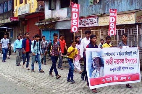 On the occasion and in fond memory of the great rebel poet, AIDSO, a students’ organization, AIDYO, AIMSS, KOMSOMOL and other cultural organizations celebrated Nazrul Jayanti in befitting ways. Rich tributes were paid to the rebel poet by organizations and members of the public on the occasion of the rebel poet’s 119th birth anniversary. These organizations also paid floral tributes at the statue of Kazi Nazrul Islam. Significantly, Nazrul is still recalled as a fiery rebel poet who raised his voice against injustice in every sphere of life.