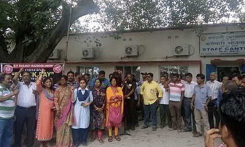 Bongaigaon: "If you want to finish anybody, first criticize him. When his image is spoilt, then kill him because at that time nobody will blame you for killing him. The same policy is being followed by the Central Government today to finish the Railway industry. They are trying to show loss in this actually profitable industry so that they can hand it over to corporate houses," said Ashish Biswas, joint general secretary of North East Frontier Railway Mazdoor Union (NFRMU) on Monday in New Bongaigaon in a protest meeting organized by NFRMU New Bongaigaon Workshop branch. He said that NFRMU under the banner of All India Railwaymen's Federation would fight against it till the end.