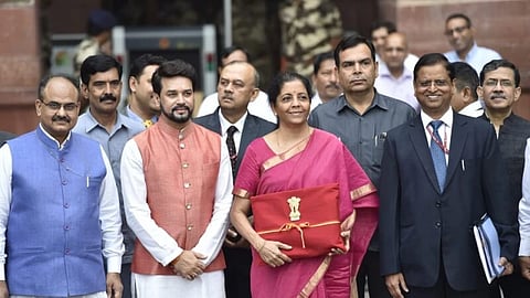 New Delhi: Going against the conventions of presenting the budget in a briefcase, the Finance Minister, on Friday morning, has broken the stereotypes by coming to present the budget in a 'bahi-khata' in the parliament. The FM brought the Budget wrapped in a four-fold red cloth called a 'bahi-khata' (ledger).